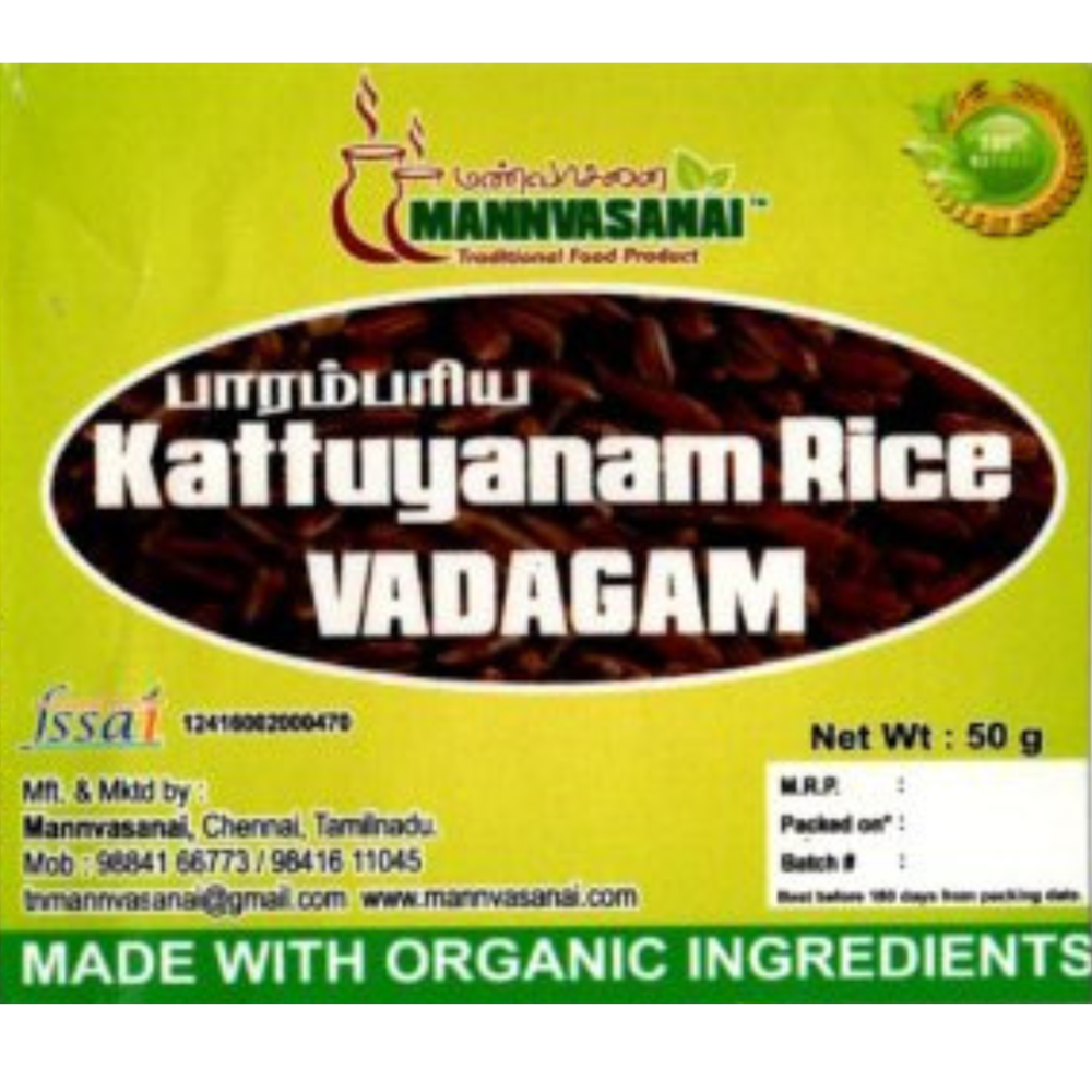 Mannvasanai is dedicated to offering the finest traditional and organic foods from Tamil Nadu. Our Kattuyanam Rice Vadagam is made with care, preserving the authentic taste and nutritional benefits of this ancient rice variety, so you can enjoy a snack that’s both delicious and nourishing.