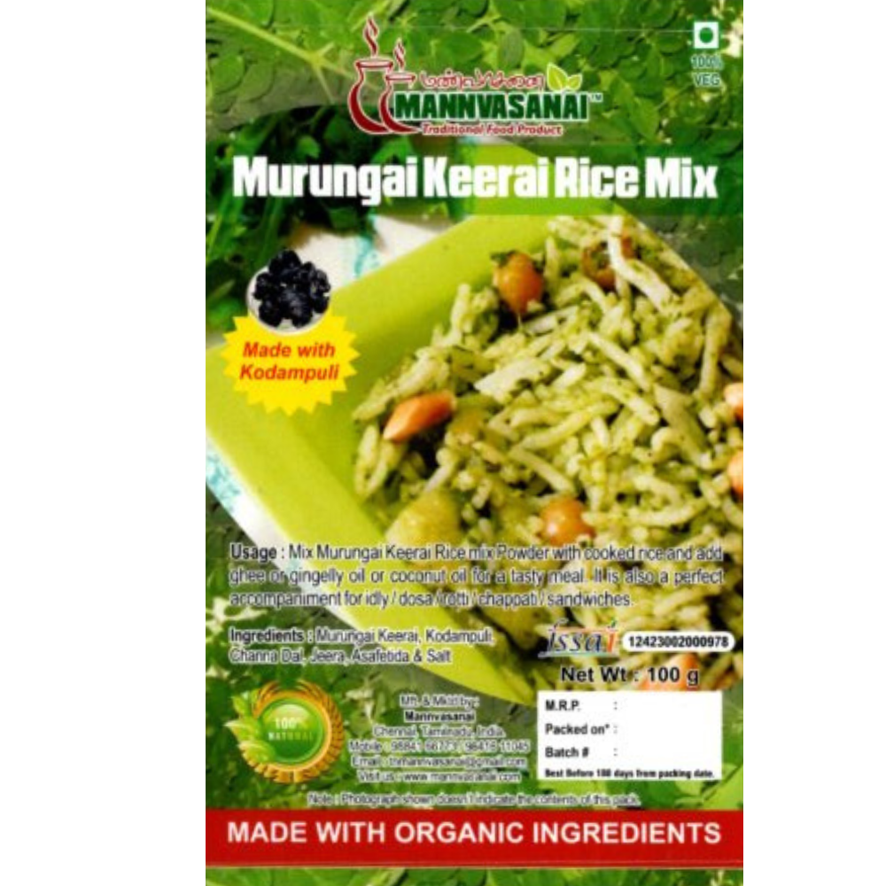Mannvasanai Murungai Keerai Rice Mix is your go-to choice for a fast, flavorful, and nutrient-rich meal that resonates with the goodness of traditional Indian cuisine. Embrace health and taste, all in one bowl!