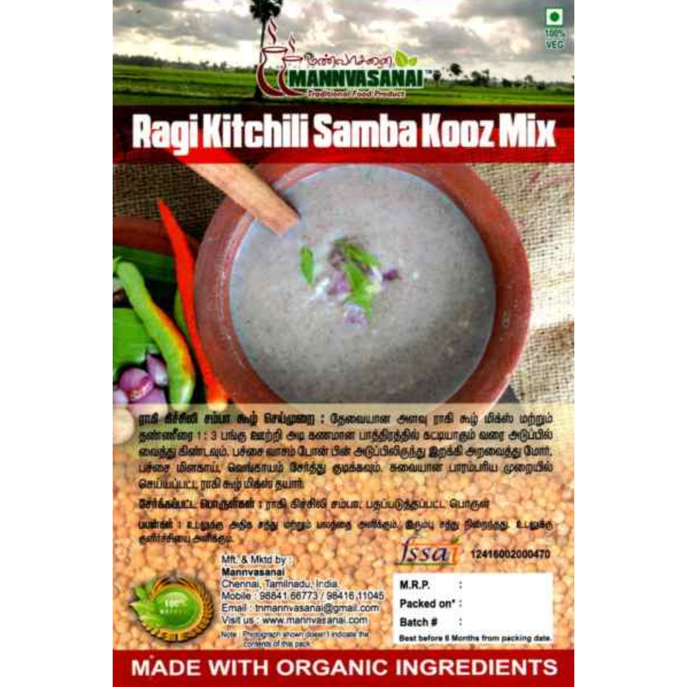 Mannvasanai is committed to offering the finest traditional and organic foods from Tamil Nadu. Our Ragi Kitchilli Samba Kooz Mix is carefully crafted to provide an authentic taste and high-quality nutrition, bringing the rich flavors of South Indian cuisine to your table.